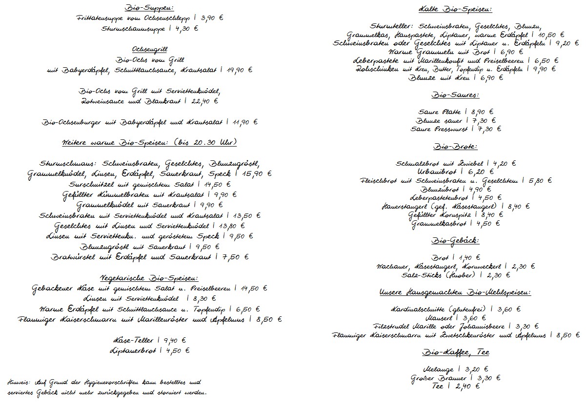 Im Oktober 2020 haben wir das erste Mal einen Sturmheurigen ausgesteckt und alle Speisen und selbsterzeugten Getränke in Bioqualität angeboten. Nachdem die Herausforderungen der Zertifizierung jeder einzelnen Speise!, die Beschaffung aller Zutaten aus biologischer Produktion, geschafft waren, sind wir mittlerweile glücklich, diese Entscheidung getroffen zu haben und führen seither jeden Heurigen in Bioqualität. Ein schöner Nebeneffekt ist, dass die zugekauften Rohstoffe noch regionaler geworden sind, als bisher.